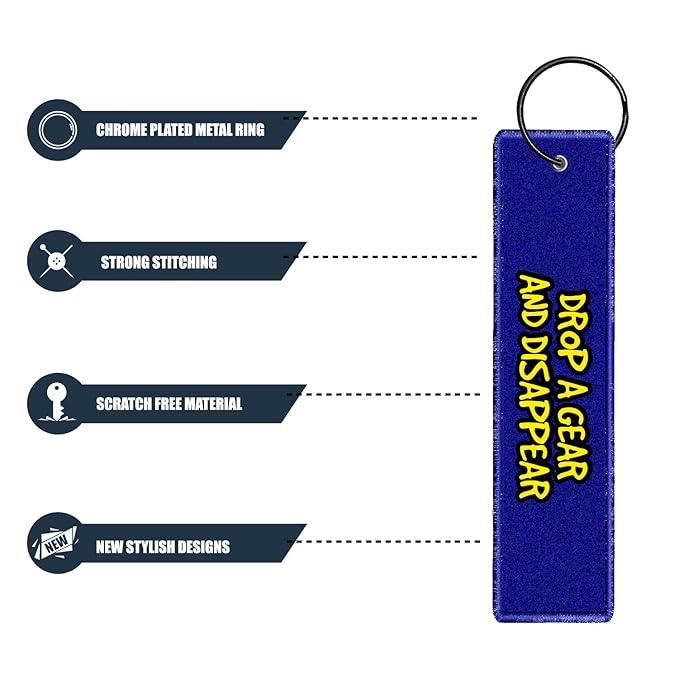 Drop a Gear And Disappear Keychain For Boys Bike Riders Motorcycle Key Tag (L x H 5 x 1 Inch)