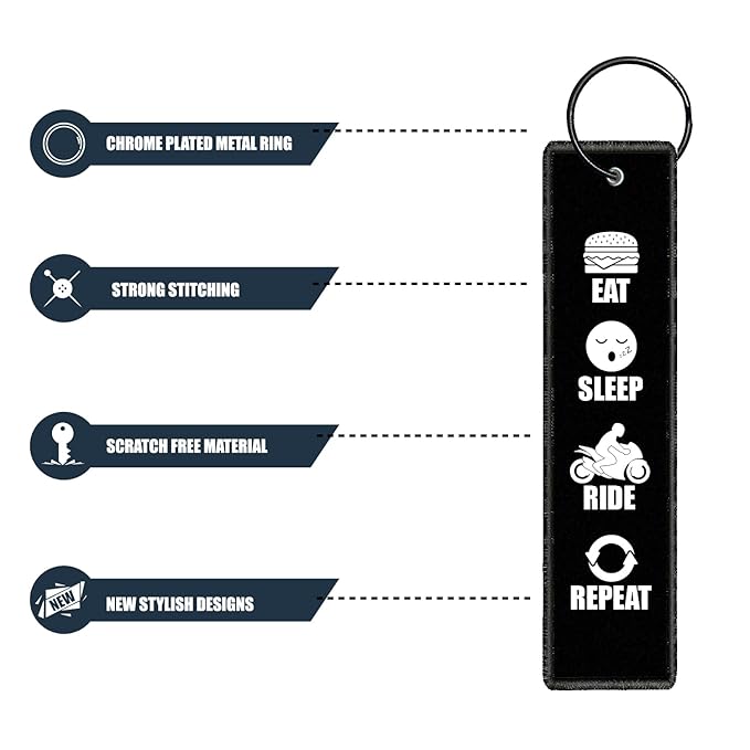 Eat Sleep Ride Repeat Keychain For Boys Bike Motorcycle Key Tag (L x H 5 x 1 Inch) 1PCS