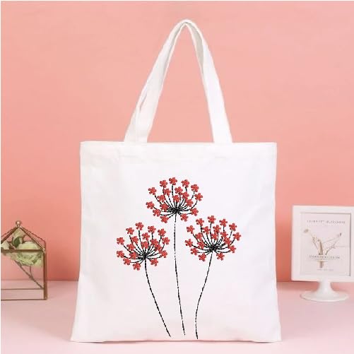 Floral Design Personalized Embroidery Tote Bag, Customized Reusable Handbag For Women And Girls, Design with Free Personalization Thread DIY Crafts
