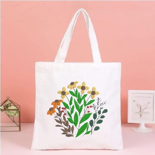 Leaves Design Personalized Embroidery Tote Bag, Customized Reusable Handbag For Women And Girls, Design with Free Personalization