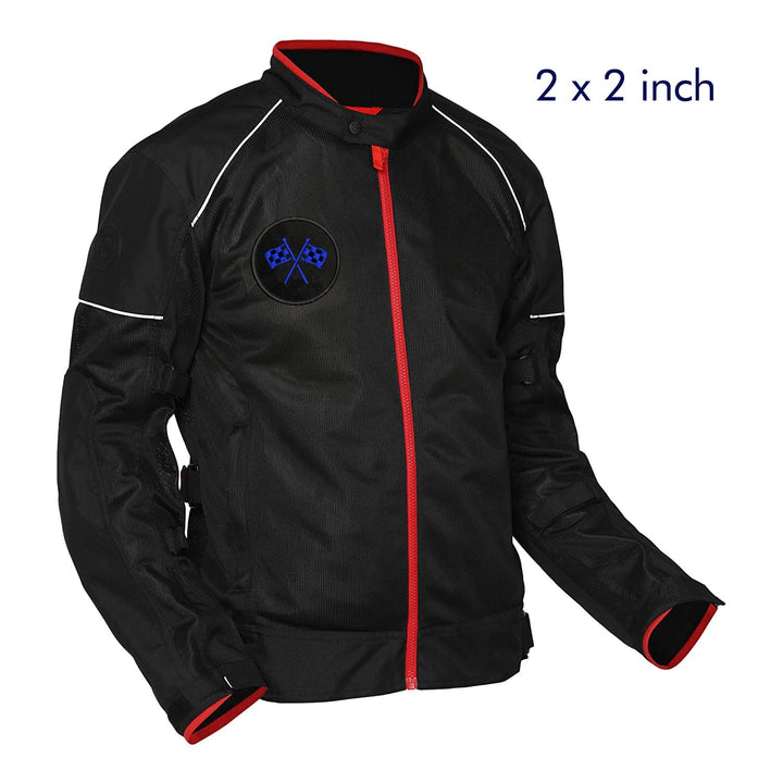 Racing Sport Checked Flag Embroidery Sewable Applique Patches for Clothes Men Boys Girls Jackets Jeans Bags Any Garments Etc L x H 2 x 2 Inch (Blue)