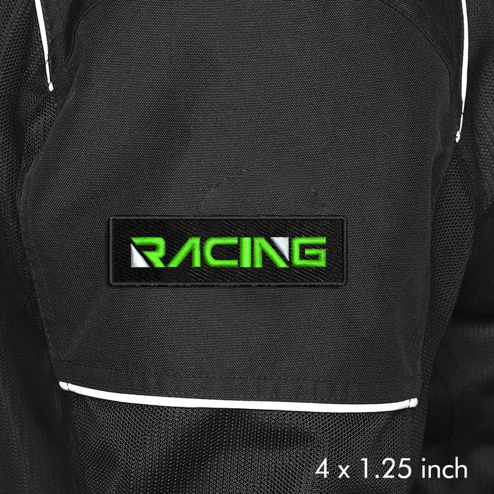 Racing Theme Embroidery Sewable Applique Patches for Riders Boys Girls Kids Jackets Jeans Bags Clothes Dress Any Garments Etc L x H 4 x 1.25 inches (Green)