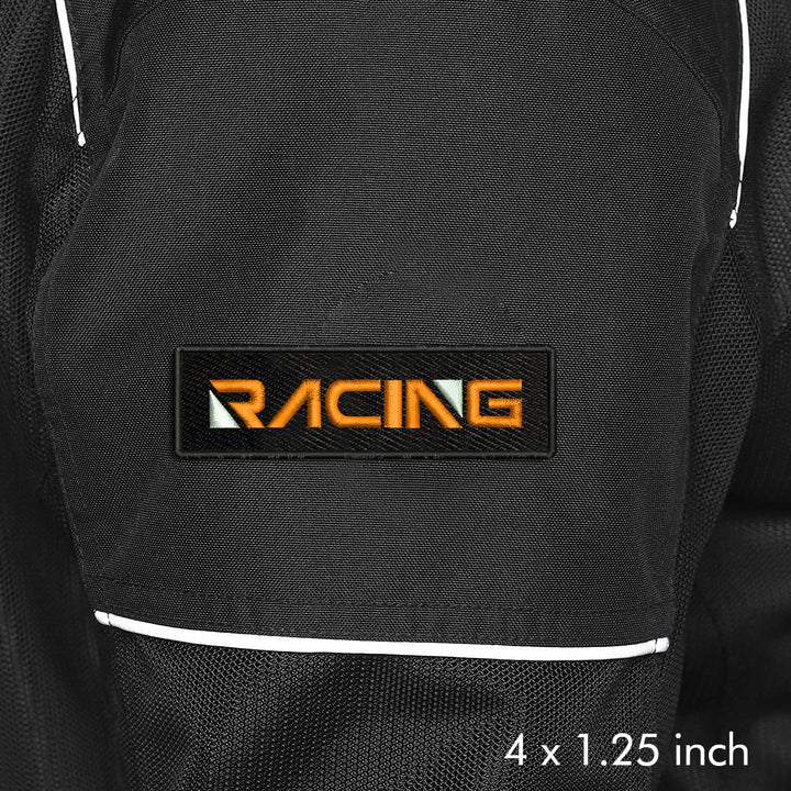 Racing Theme Embroidery Sewable Applique Patches for Riders Boys Girls Kids Jackets Jeans Bags Clothes Dress Any Garments Etc L x H 4 x 1.25 inches (Orange)