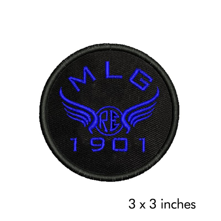 Re MLG 1901 Logo Embroidered Sweable Applique Patches Jackets Boys Girls Riders Jeans Bags Clothes Dress Any Garments L x H 3 x 3 Inch (Blue)