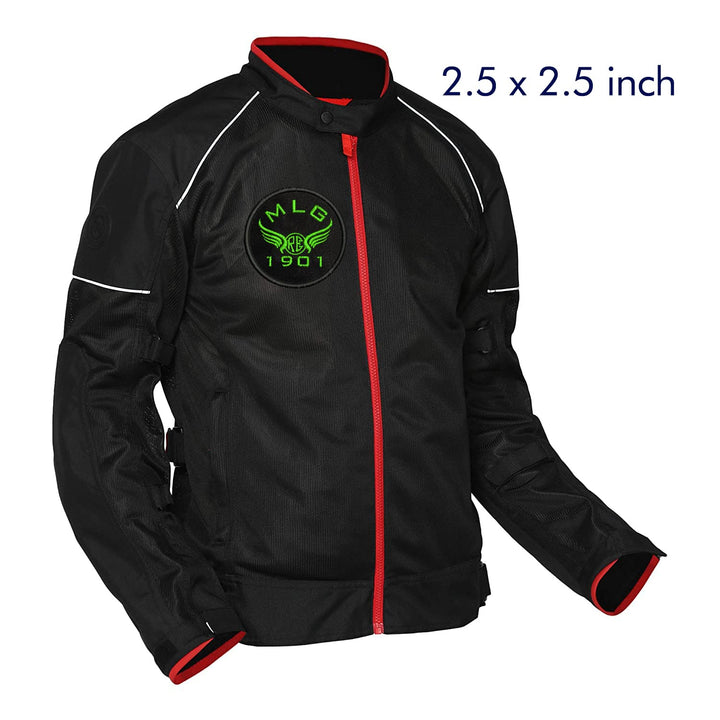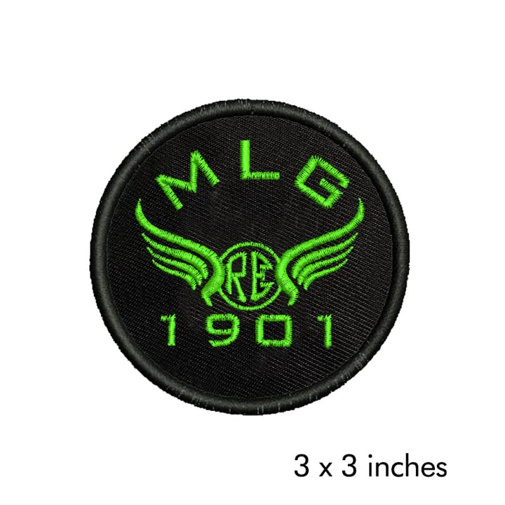 Re Mlg 1901 Logo Embroidered Sweable Applique Patches Jackets Boys Girls Riders Jeans Bags Clothes Dress Any Garments L x H 3 x 3 Inch (Green)