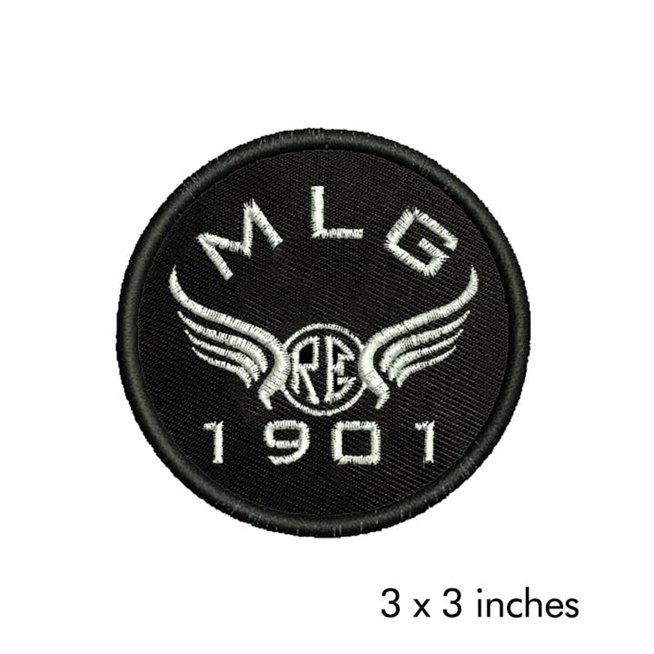Re MLG 1901 Logo Embroidered Sweable Applique Patches Jackets Boys Girls Riders Jeans Bags Clothes Dress Any Garments L x H 3 x 3 Inch (White)
