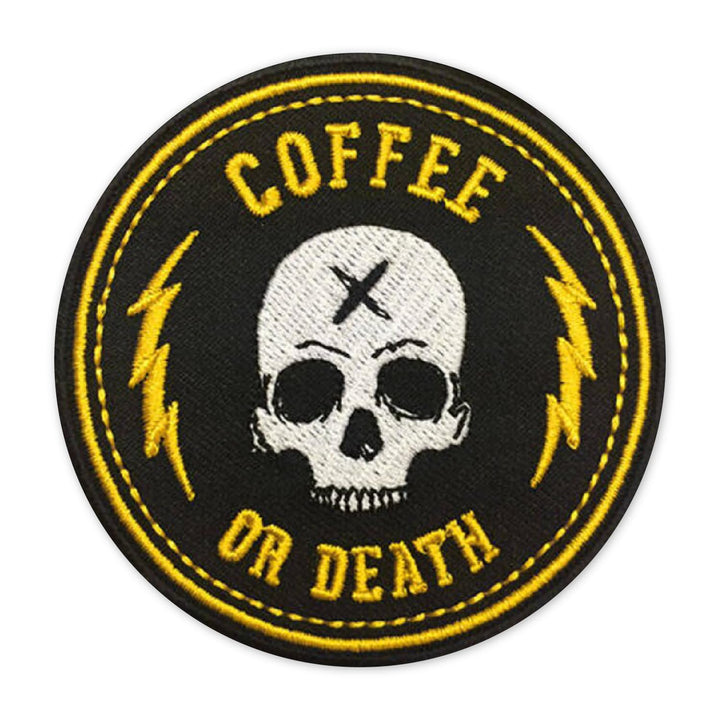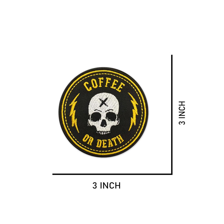 Skull Coffee Or Death Embroidery Applique Sweable Patches for Jackets Shirts Bags Jeans T Shirts All Kinds of Clothes ETC L x H 3 x 3 Inch