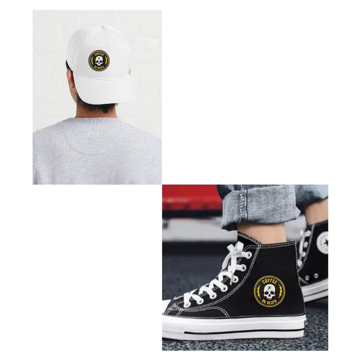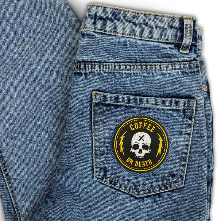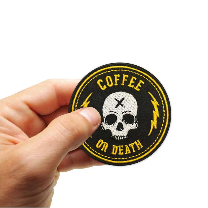 Skull Coffee Or Death Embroidery Applique Sweable Patches for Jackets Shirts Bags Jeans T Shirts All Kinds of Clothes ETC L x H 3 x 3 Inch