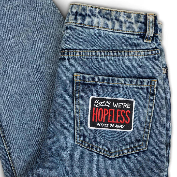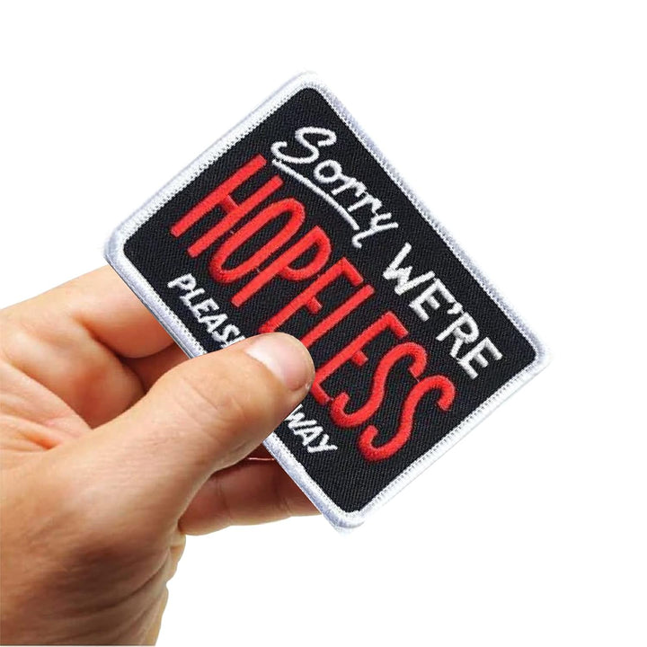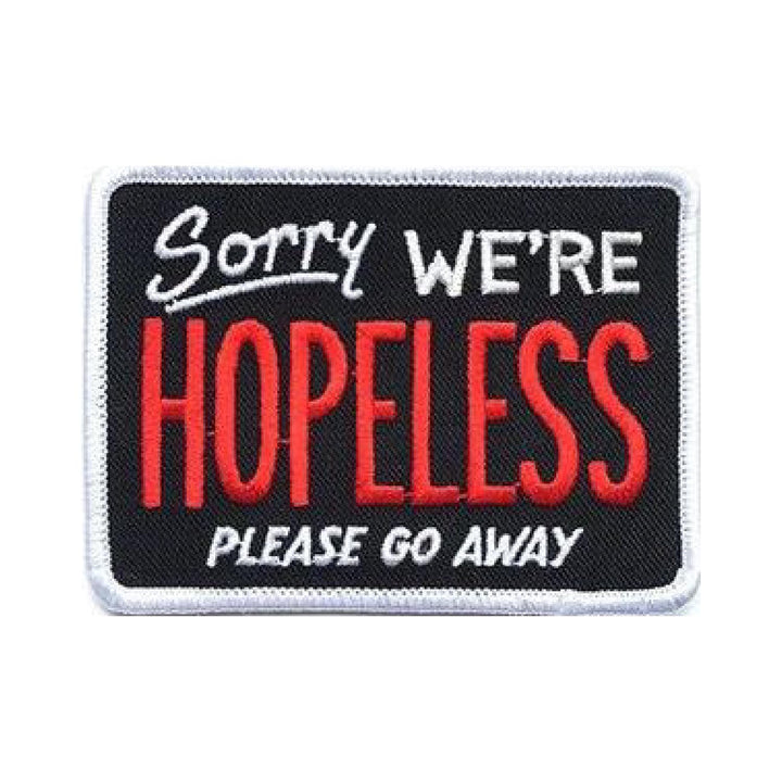 Sorry We're Hopeless Please go Away Embroidery Sweable Patches Applique for Shirts Bags Jackets Jeans Any Type Clothes ETC L x H 3 x 2 Inch