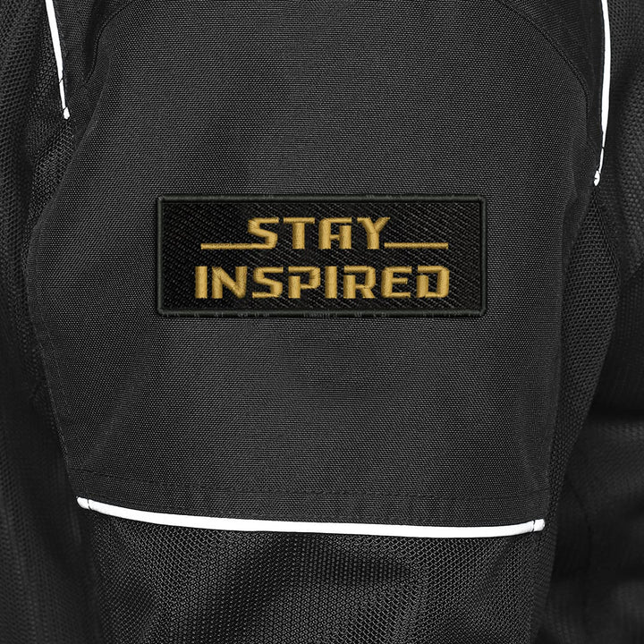 Stay Inspired Embroidered Sweable Applique Patches for Jackets Boys Riders Racers Jeans Bags Clothes Dress Any Garments L x H 4 x 2 Inch (Gold)