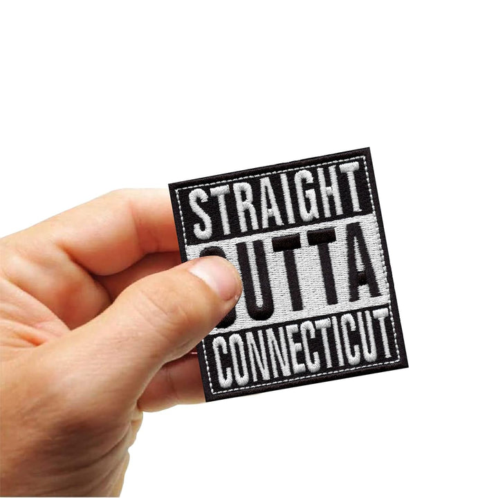Straight Outta Connecticut Applique Sweable Embroidery Patches for All Garments T Shirts Bags Shirts Jeans Jackets ETC L x H 2.7 x 3 Inch (Embroidered Patches)