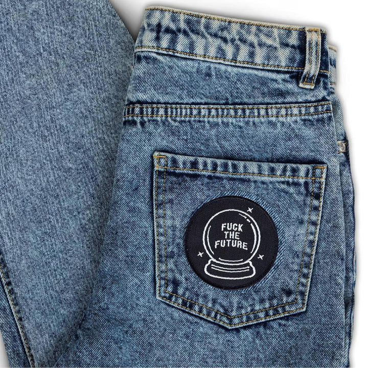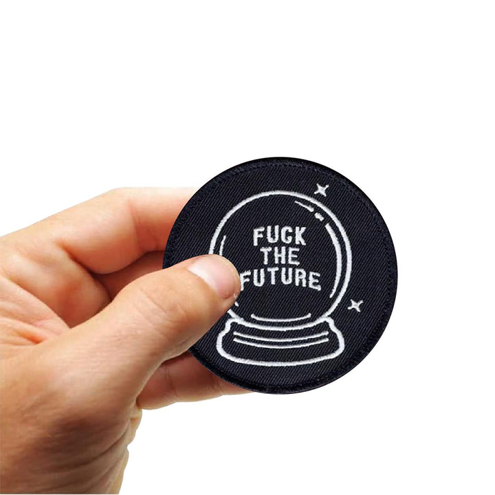 Sweable Fuck The Future Embroidery Patches Applique for Shirts|Jeans|Bags|Jackets|T Shirts| All Types of Garments ETC | L x H 3 x 3 Inch | Round