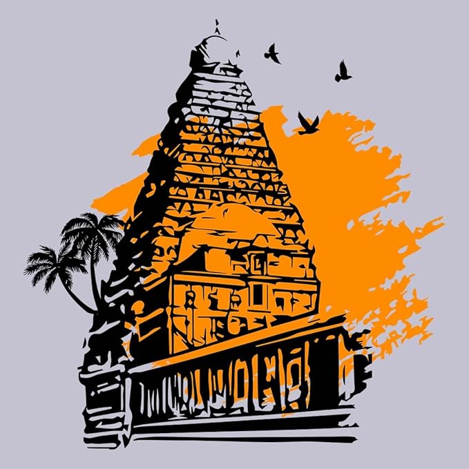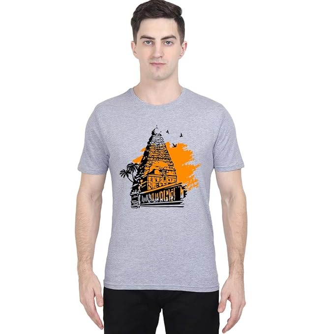 Thanjavur Periya Kovil Men Half Sleeve Grey Melange Tamil History T-Shirt