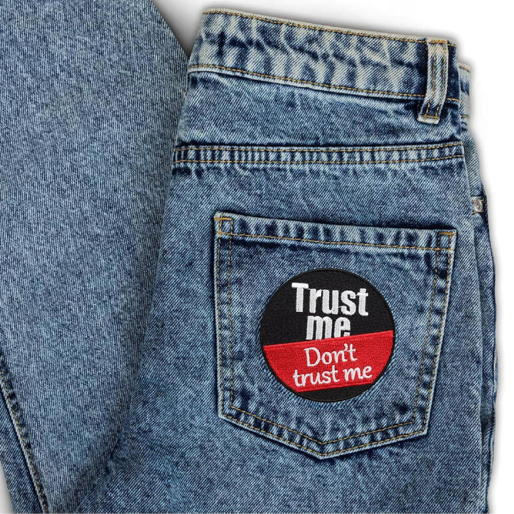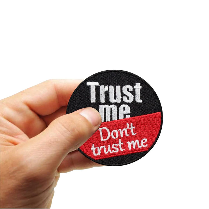 Trust Me Don't Trust Me Embroidery Sweable Patches Applique for - Bags Shirts Kurtis Jackets Jeans All Types of Garments ETC L x H 3 x 3 Inch (Round)