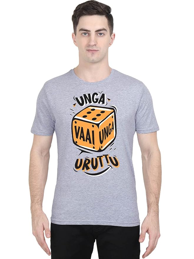 Unga Vaai Unga Uruttu Men's Grey Melange Half Sleeve Tamil Round Neck T-Shirt