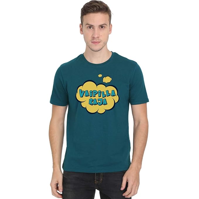 Vaipilla Raja Men's Petrol Half Sleeve Tamil Round Neck T-Shirt